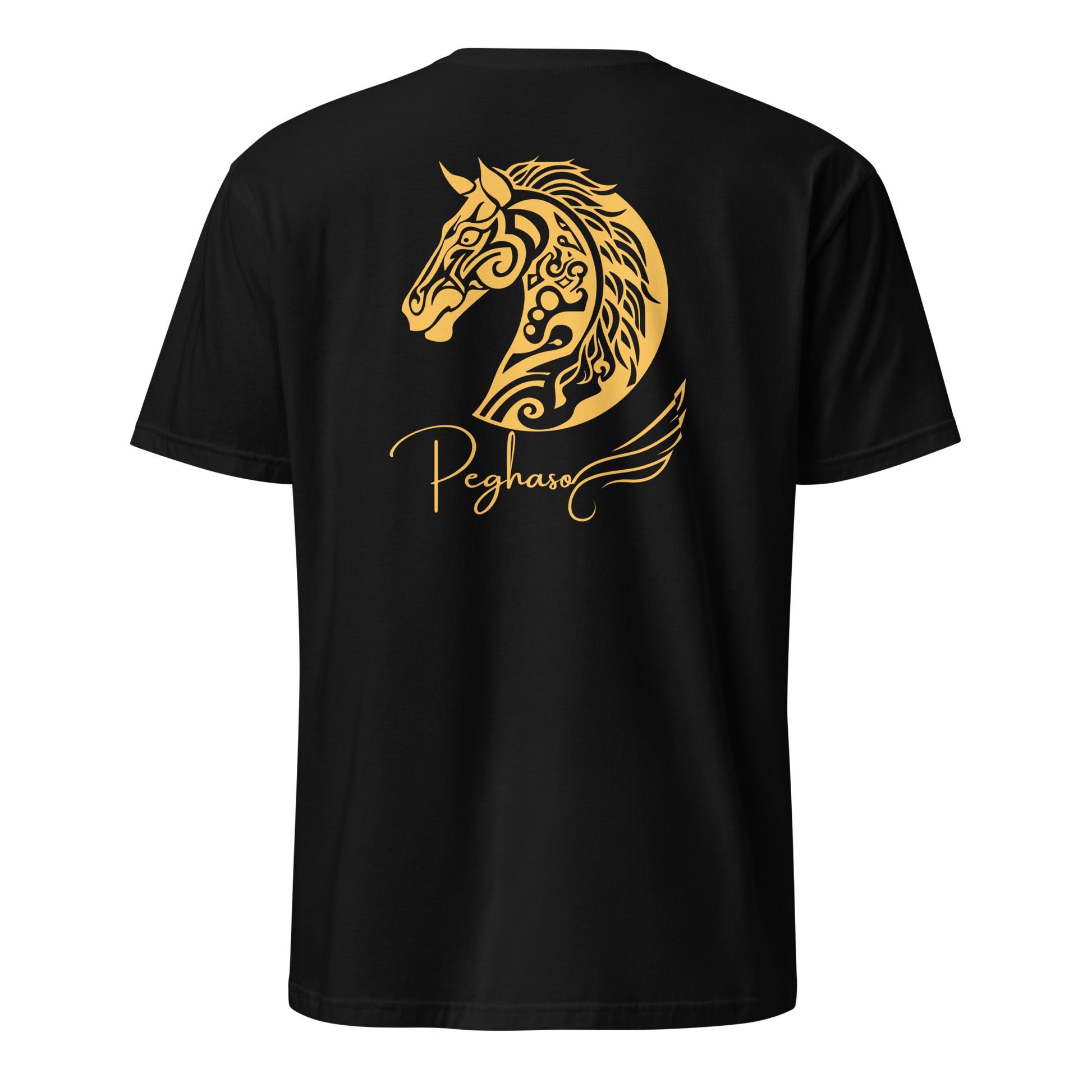 Camiseta PEGHASO ASTEK. En esta camiseta se ha trabajado el diseño representando la cabeza de pegaso con trazos azteca, una camiseta perfecta a la par que elegante para vestir con tu outfit urbano. En la zona del pecho en su parte izquierda lleva el logo de nuestra marca relleno del mismo color que el diseño. Colores: Negra y Blanca