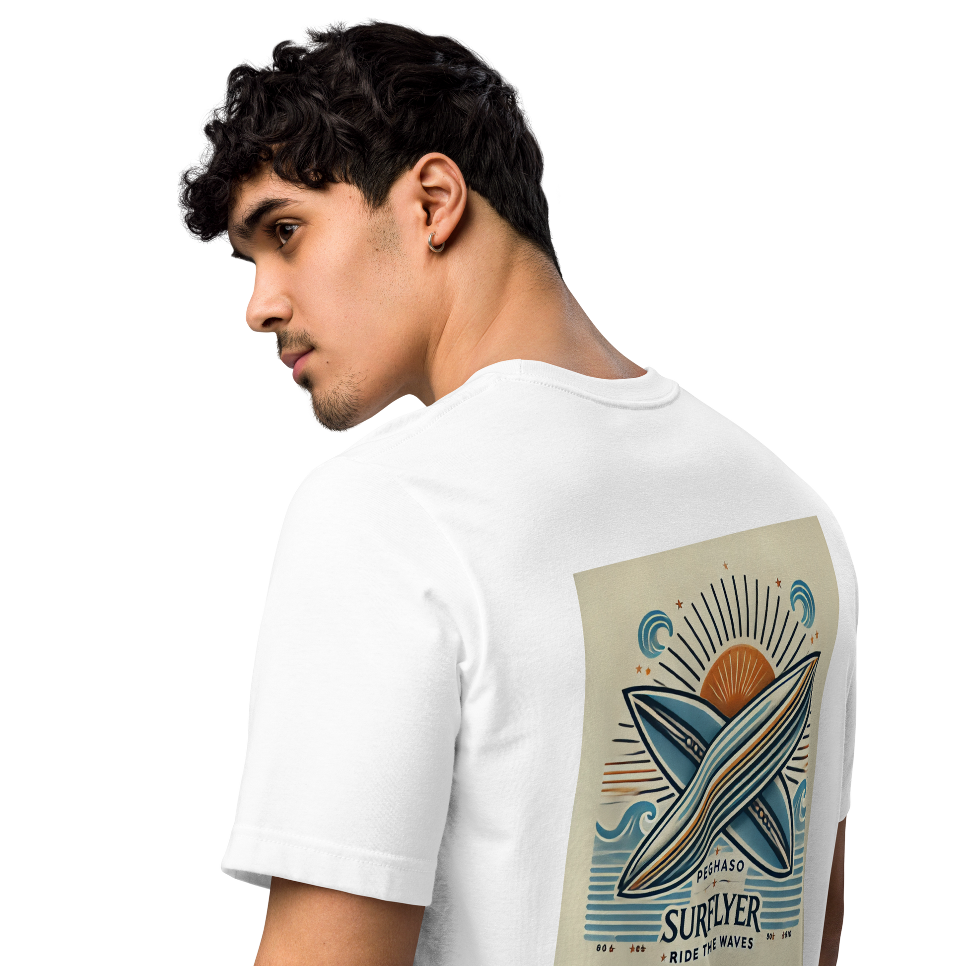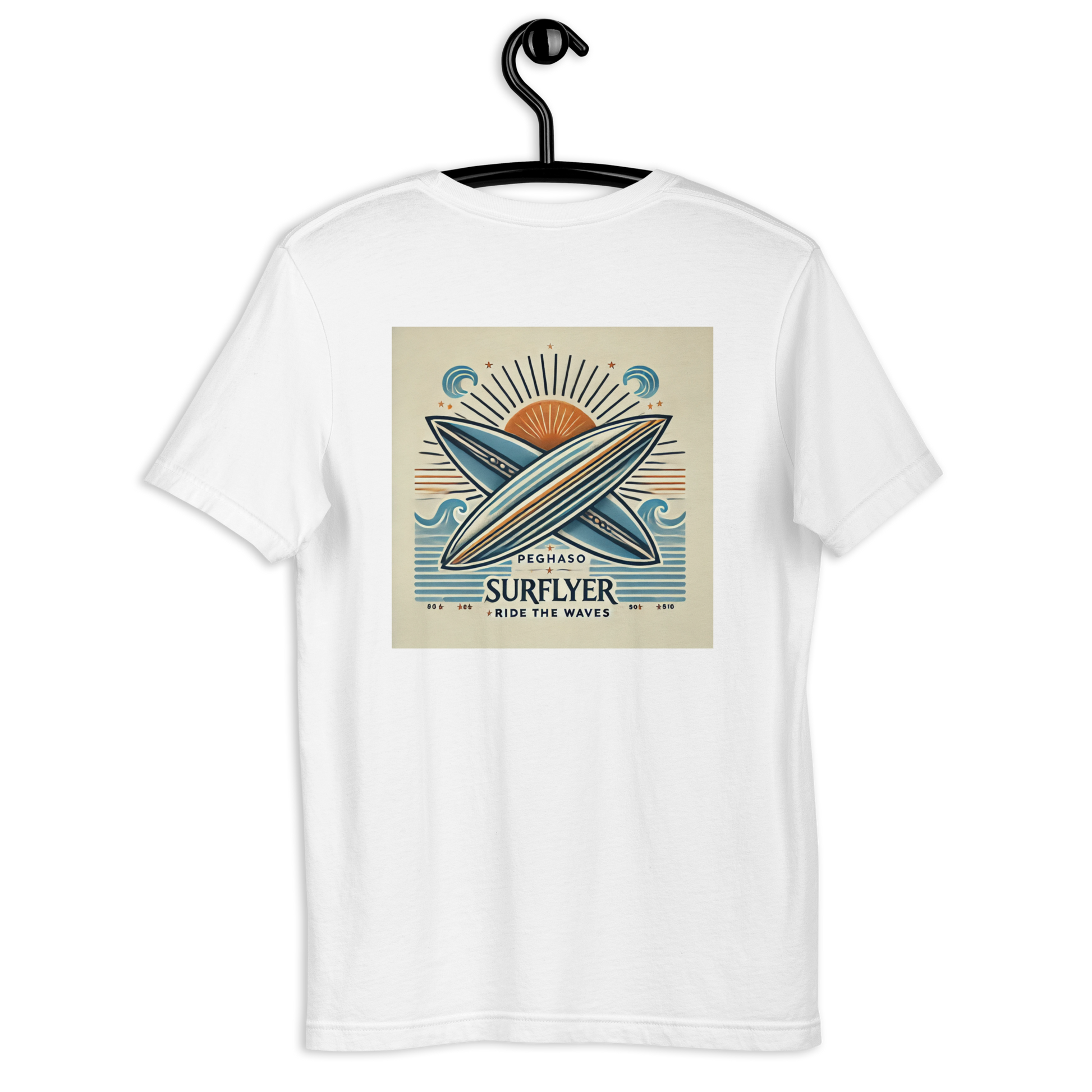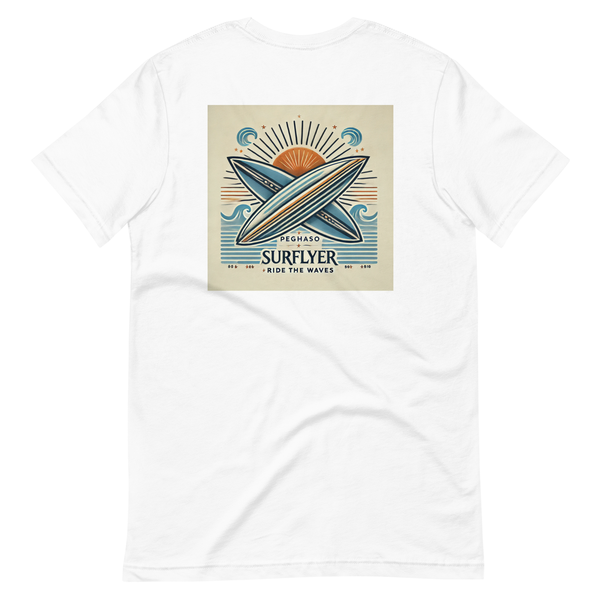 Lleva el espíritu del surf a donde vayas con la camiseta SURFLYER SURFBOARDS X de PEGHASO. Inspirada en la adrenalina de las olas y la libertad de los surfistas, esta prenda combina un diseño retro con un toque moderno, perfecta para los amantes del mar y el estilo urbano.