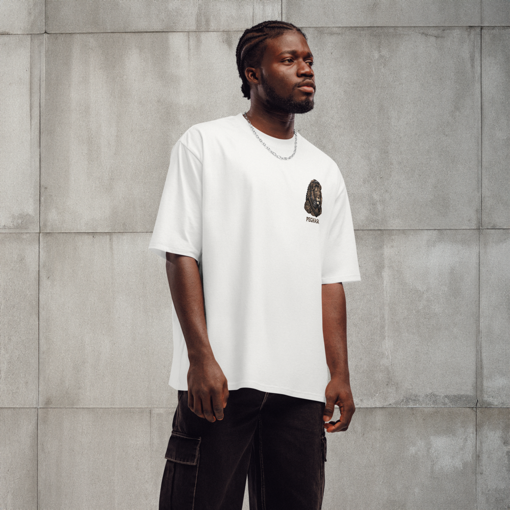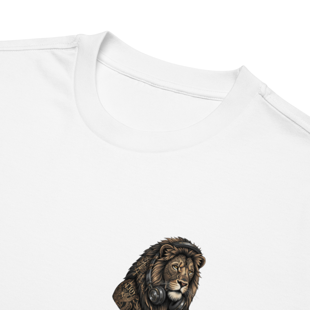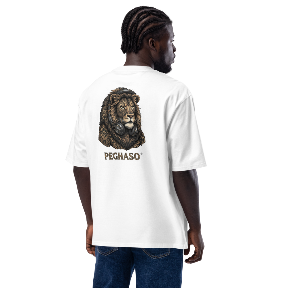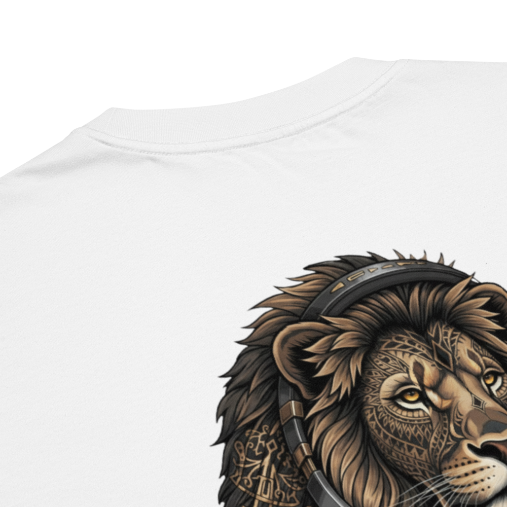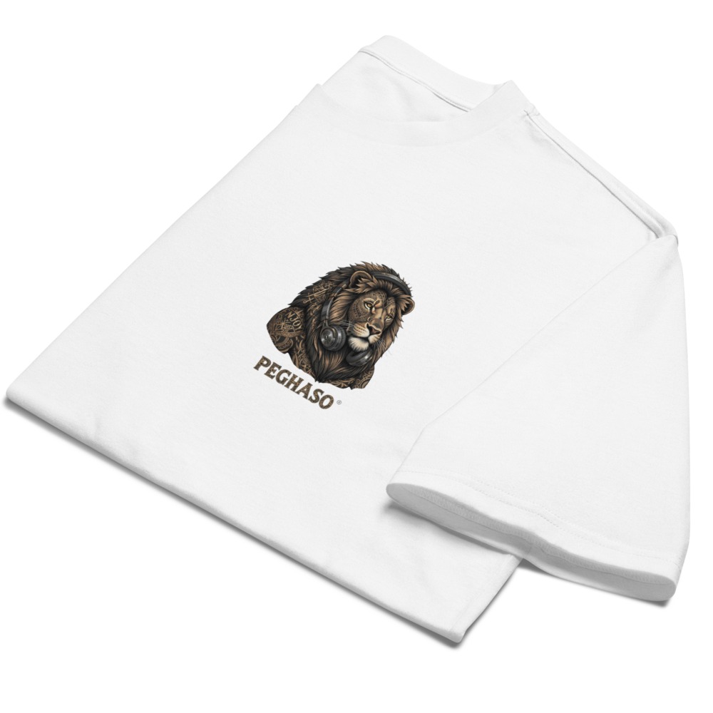 El diseño exclusivo presenta un majestuoso león con auriculares, simbolizando la fusión entre la fuerza, la elegancia y la música, el arte que conecta con el alma. El corte oversize asegura una silueta moderna y cómoda, ideal para quienes buscan destacar sin sacrificar la comodidad.